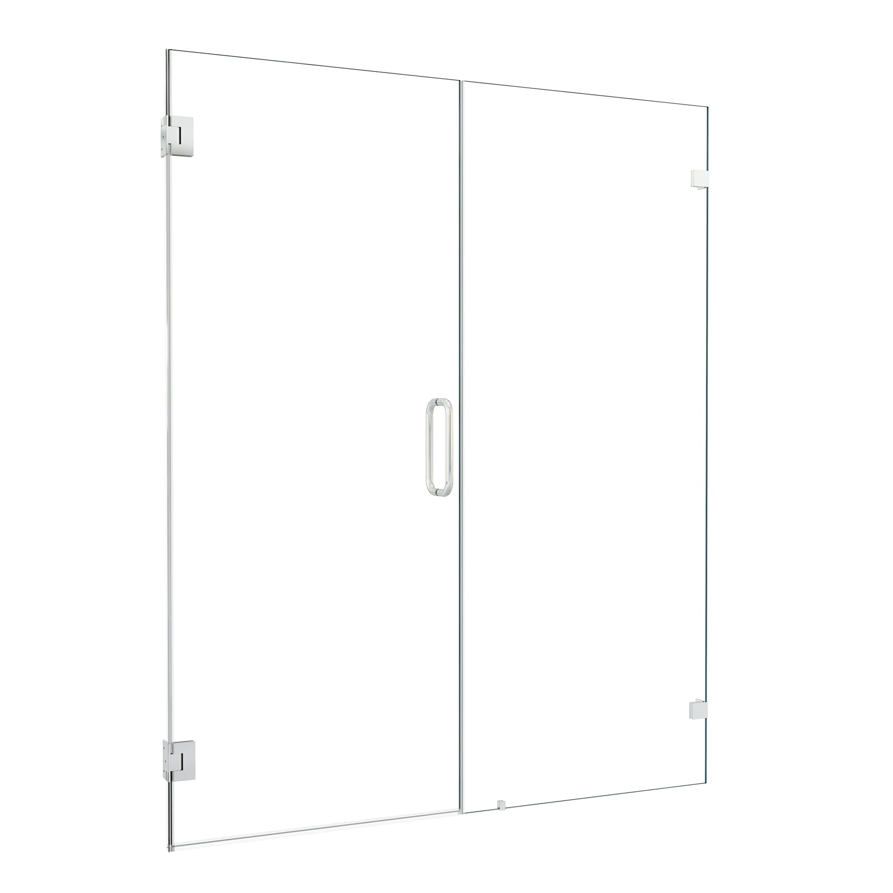 Frameless in-line panel/hinged door combination fits seamlessly over your shower stall, providing a sleek, modern look.