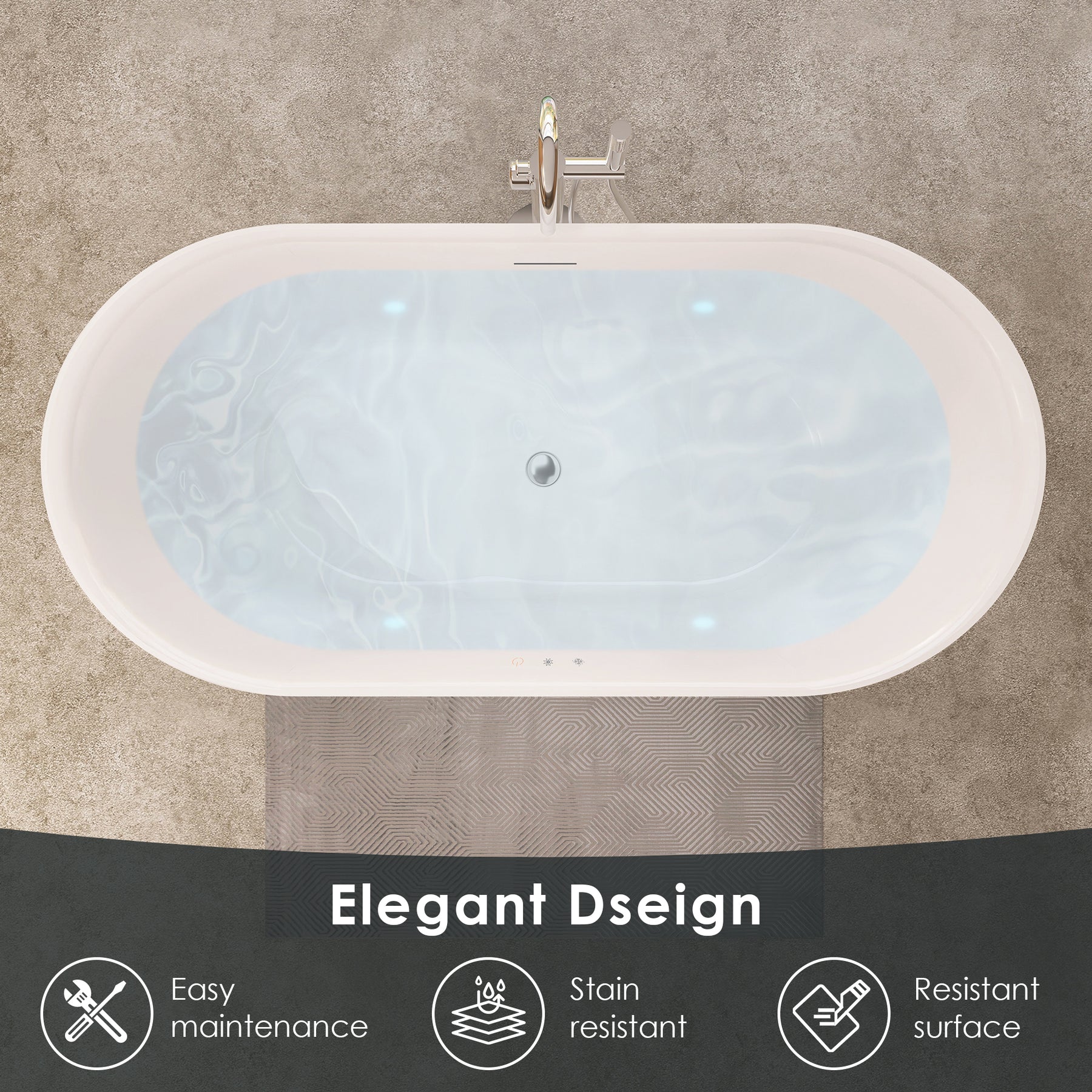 Designed with a smart ergonomic shape, our Royce Freestanding Bathtub cradles you in comfort, providing optimal support that nestles against the natural contours of your body. The integrated air bubble massage function, enhanced with ambient LED lighting, offers a serene escape, enveloping you in a dreamy cushion of bubbles that soothe and relax you. This tub’s simple silhouette and vivid white finish add a bold and modern splash of style, making it a striking centerpiece for your contemporary bathroom space.