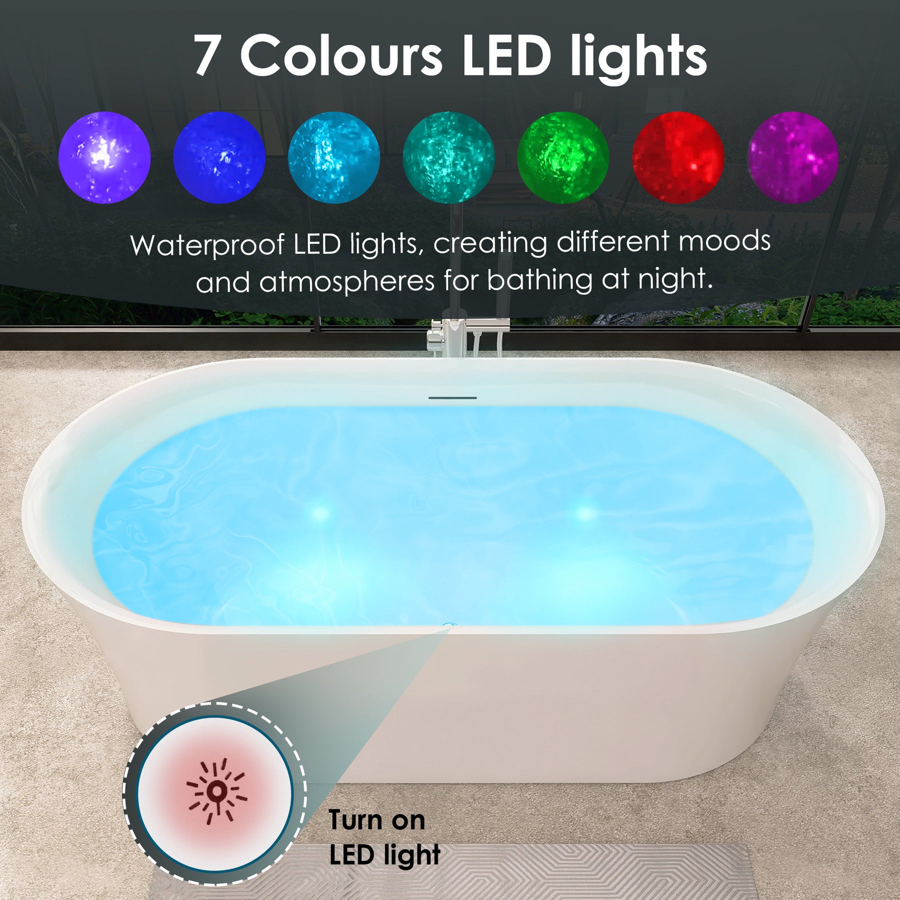 • Resistant: Soothing air bubble massage function with multicolored LED light enhances relaxation.