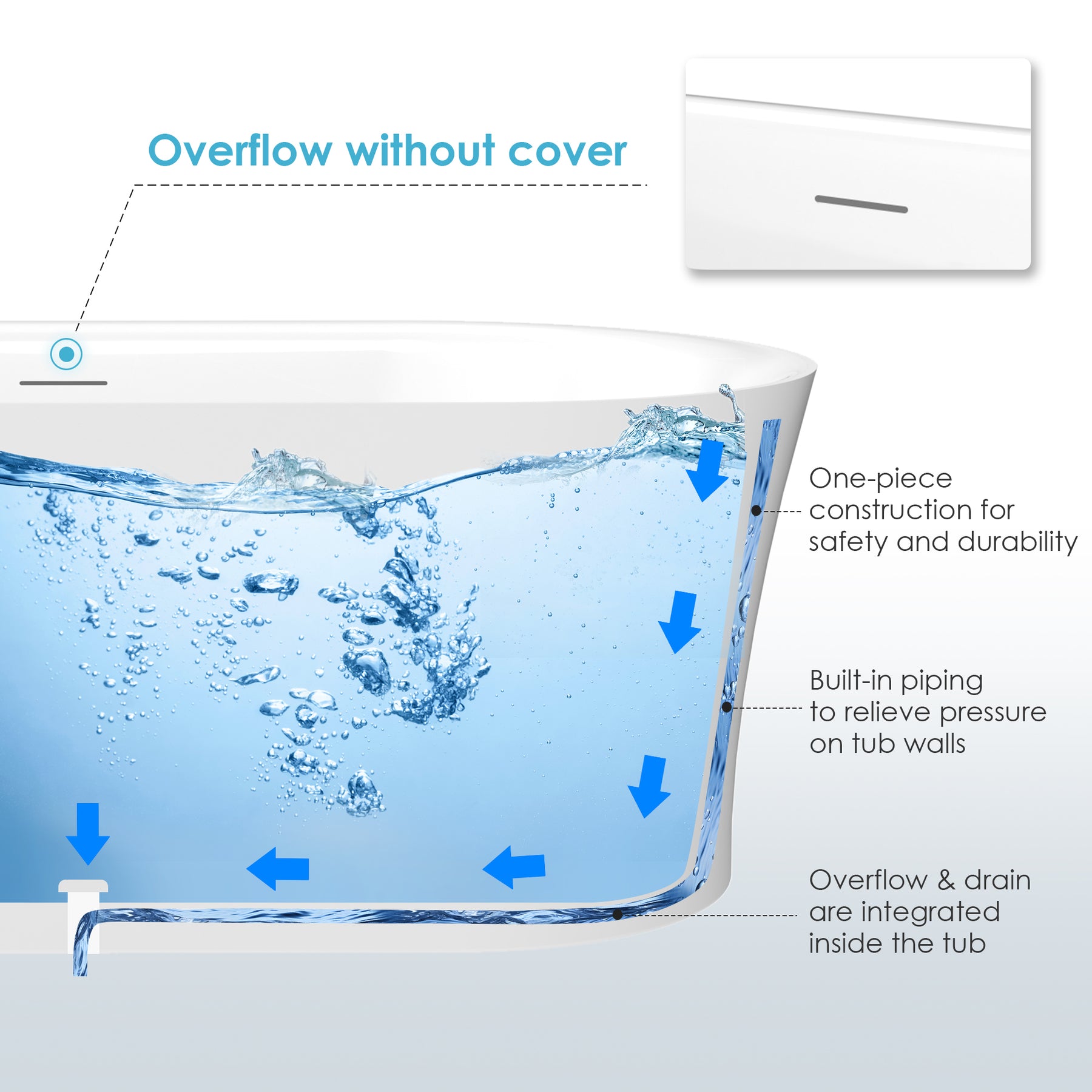 • Overflow and Drain: 15.5-in. water depth to overflow allows for an immersive bathing experience.