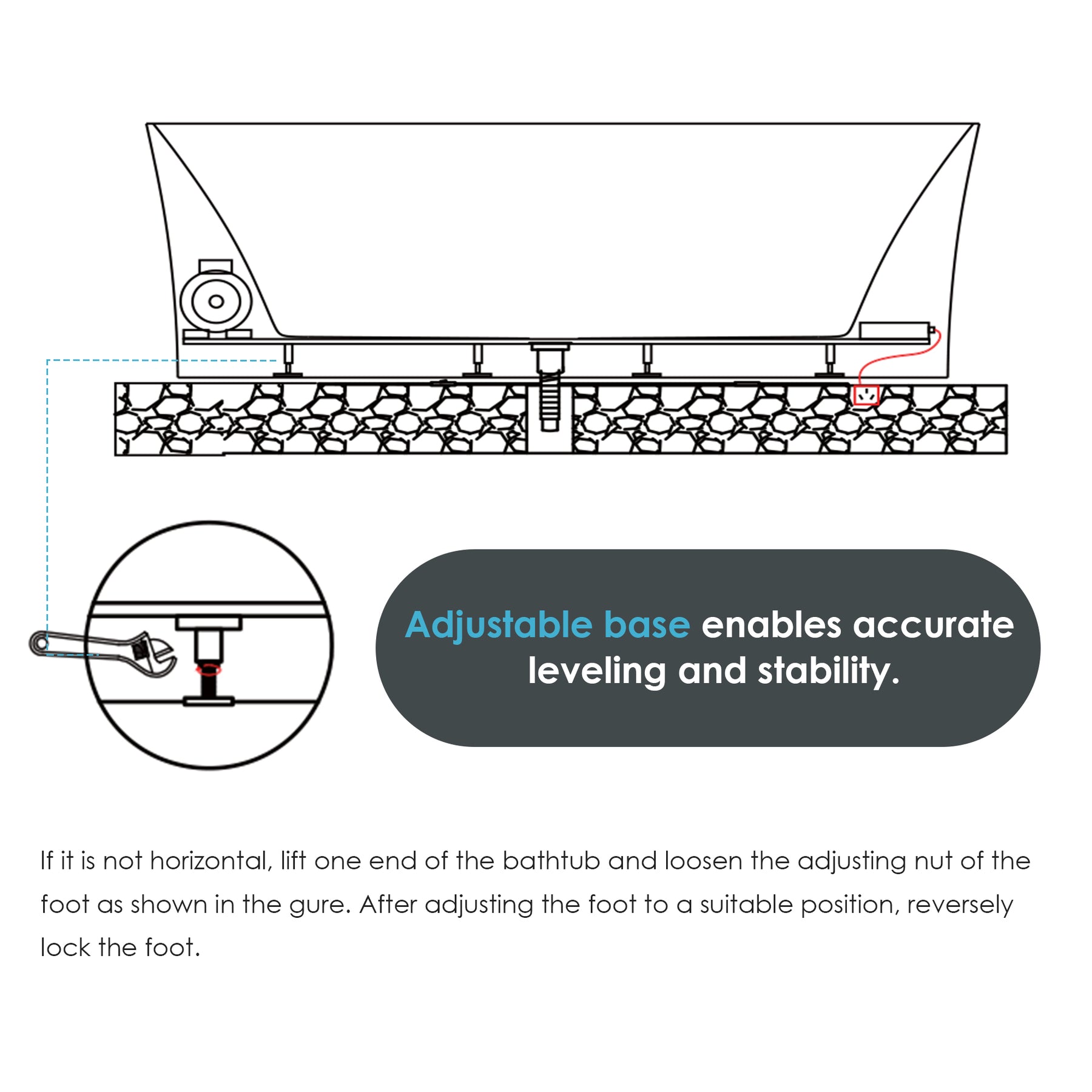 • Adjustable Feet: 87-gallon tub capacity provides supreme comfort and spaciousness.