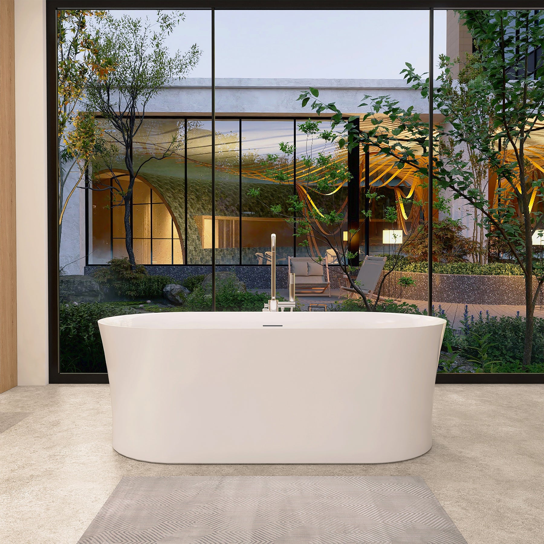 Royce 67" x 32" Flatbottom Freestanding Acrylic Soaking Bathtub in Glossy White with Drain and Integrated Overflow