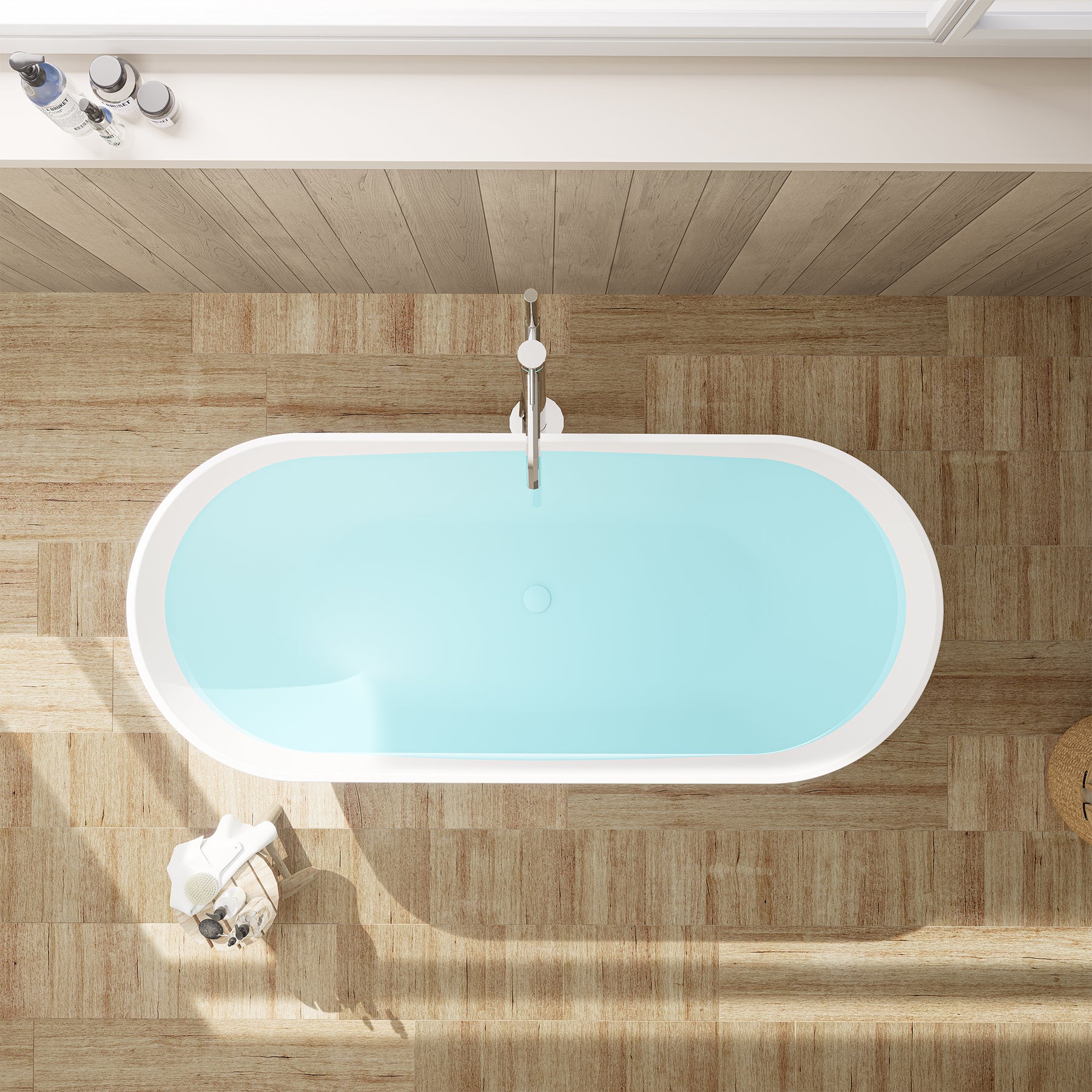 Size: Contemporary, oval-shaped tub features freestanding, double-slipper design.