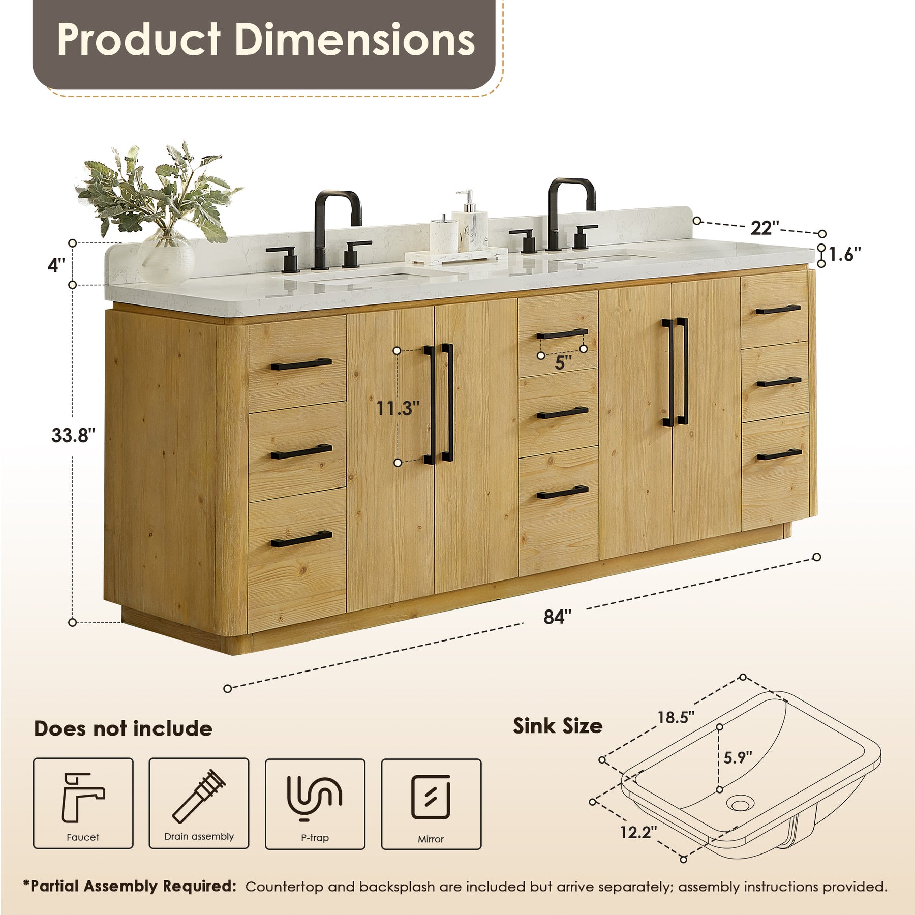 Hardware: Countertop comes with pre-drilled 8” widespread faucet hole for installation convenience(Faucet sold separately).