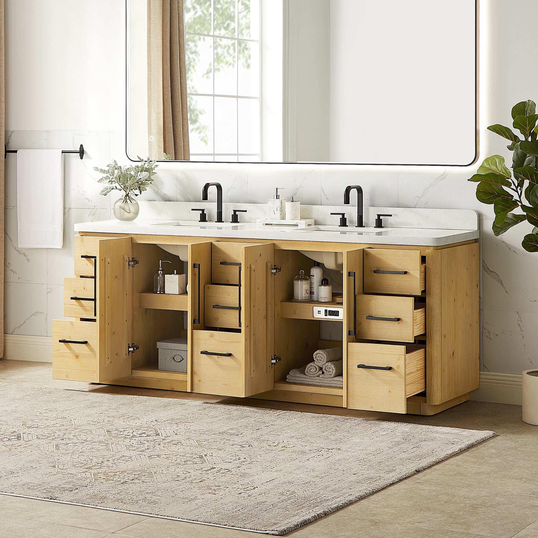 Looking to add style and warmth to your bathroom space? Our Serene vanity combines sleek design with exceptional functionality, featuring a rich Nature Brown finish that brings a natural feel and sophistication to your bathroom. The recessed plinth base gives the vanity a sleek, floating appearance, while the rounded edges of both the vanity and countertop create a soft, contemporary look that feels inviting and modern. Meticulously designed for a clutter-free experience, our vanity features removable partition compartments that can be customized to suit your needs, ensuring your engineered stone takes center stage. Equipped with UL-listed power and USB outlets, this vanity offers convenient charging and power options, seamlessly blending style, organization, and functionality.