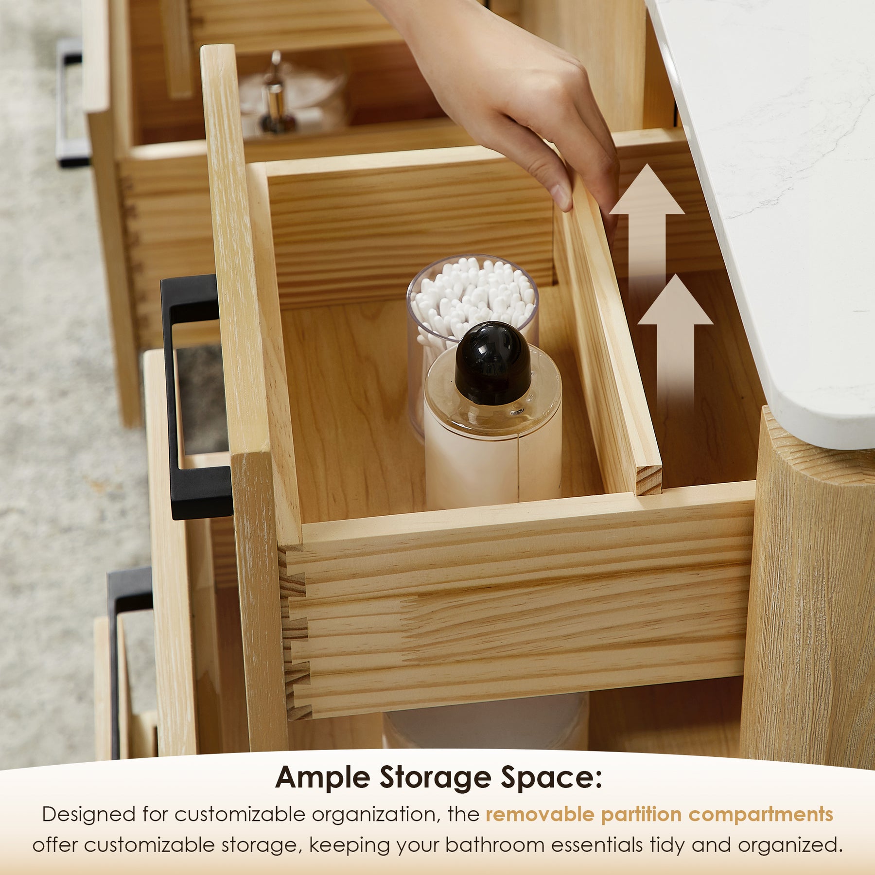 Drawer & Door: Equipped with soft-closing drawers and doors, this vanity ensures quiet, smooth operation and long-lasting durability.