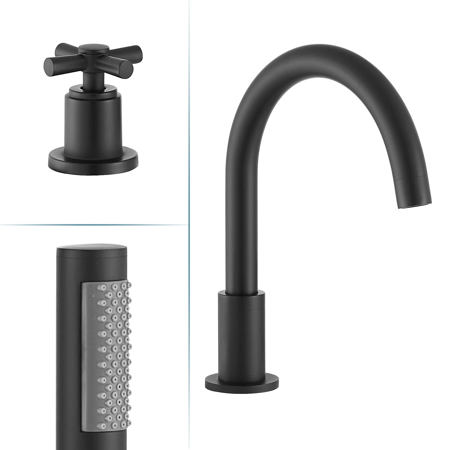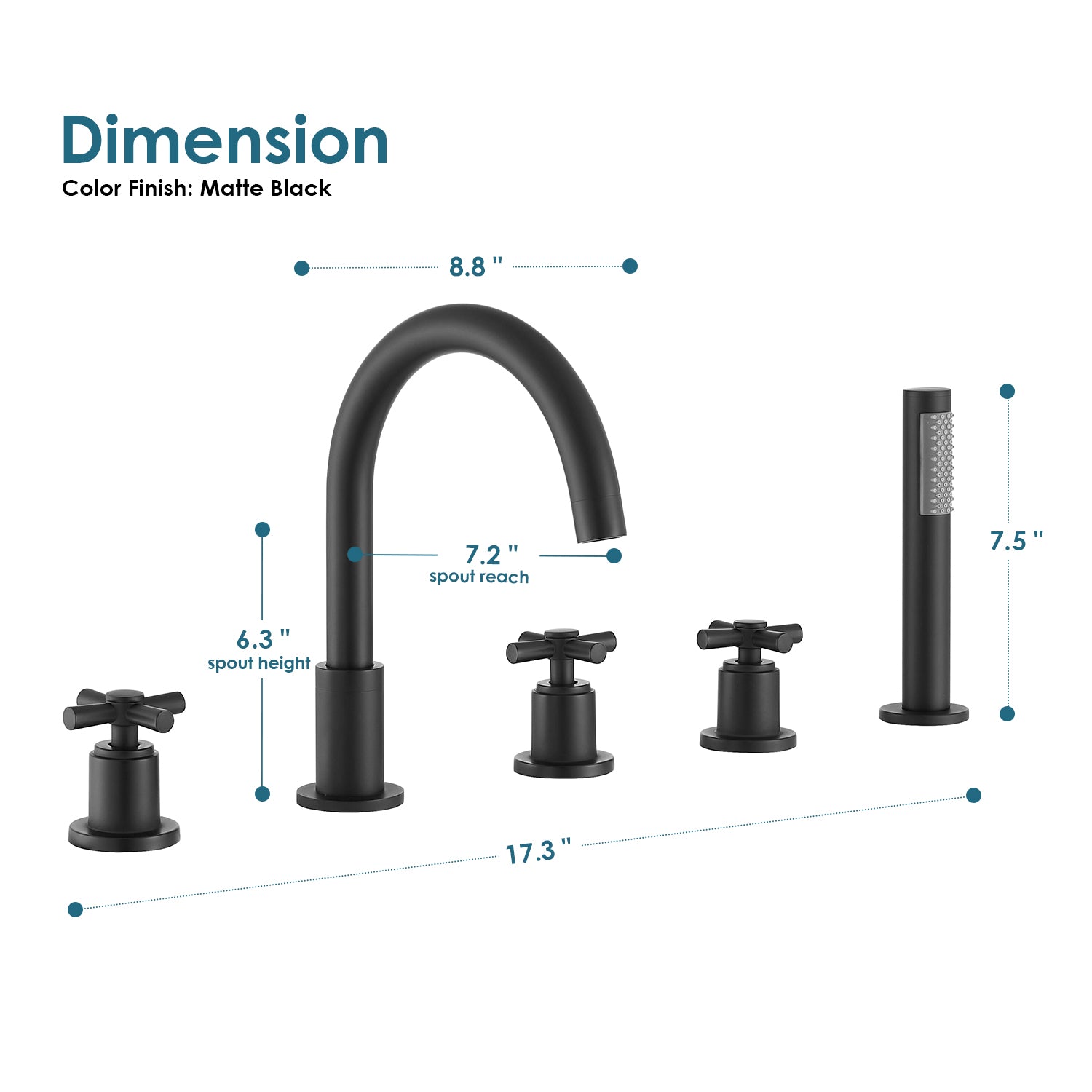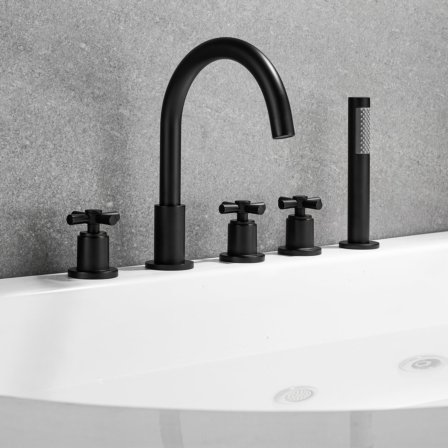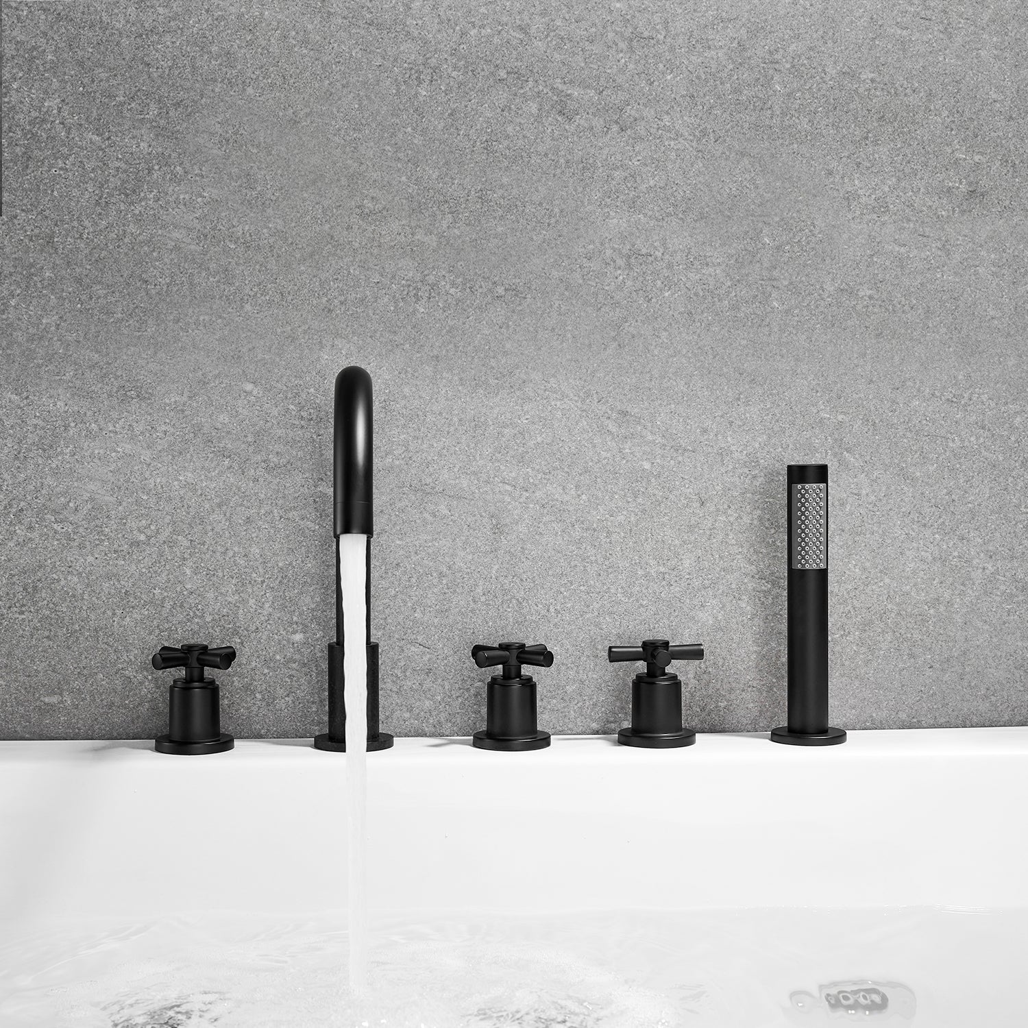 With its refined gooseneck design, our Sorlia Deck-Mount Bathtub Faucet is a stunning and versatile addition to any style tub. It features ergonomic triple-cross handles as well as a handheld shower head that provides the ultimate in bathing convenience. This faucet is constructed of solid brass components and plated in your choice of two elegant finishes. It’s engineered for years of reliable performance and enduring beauty.