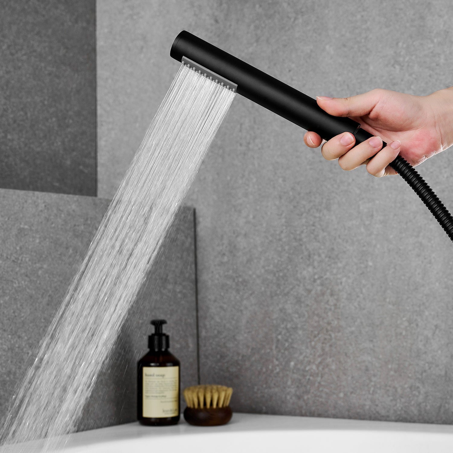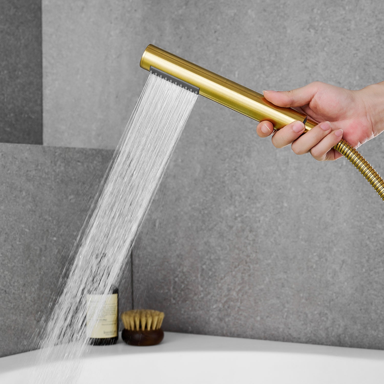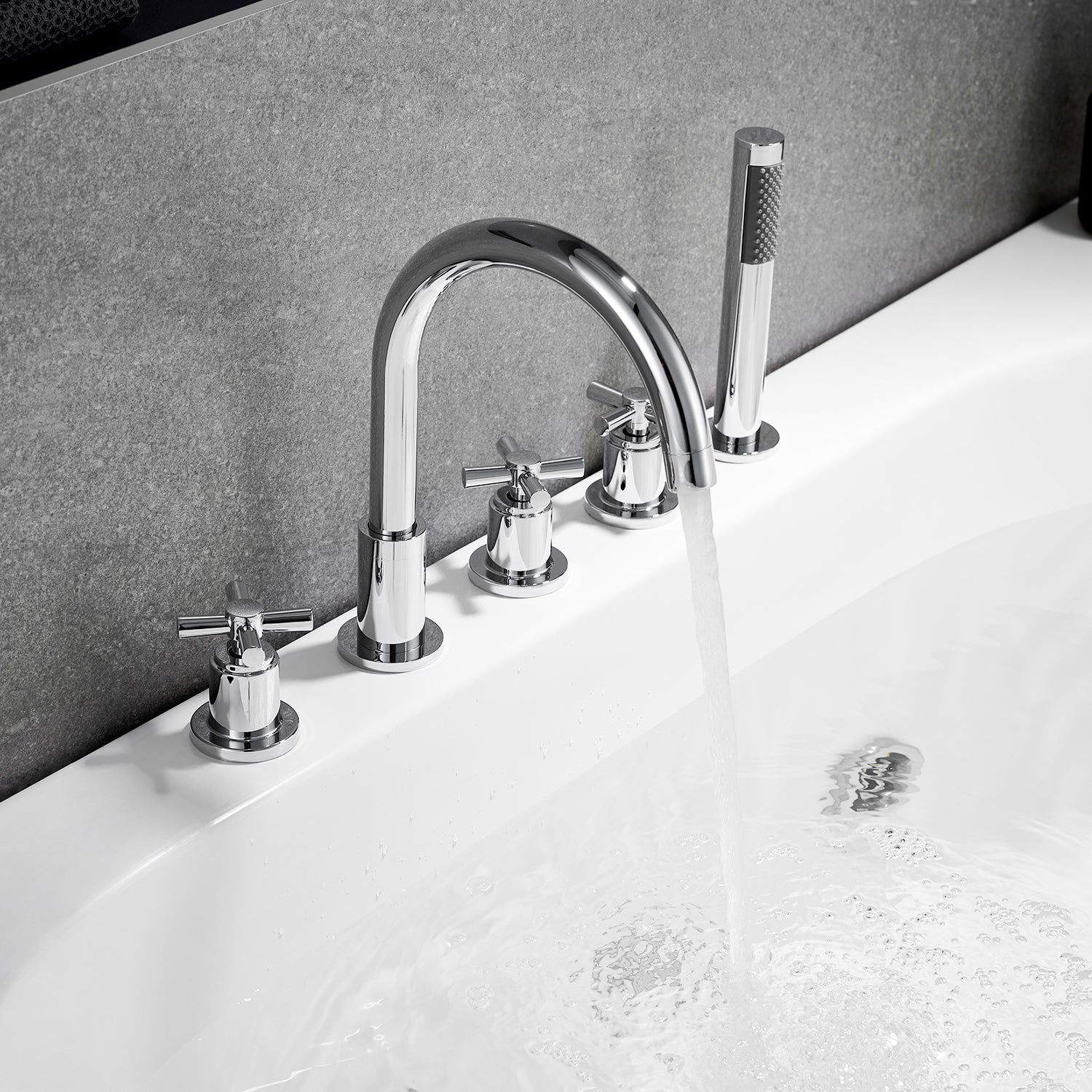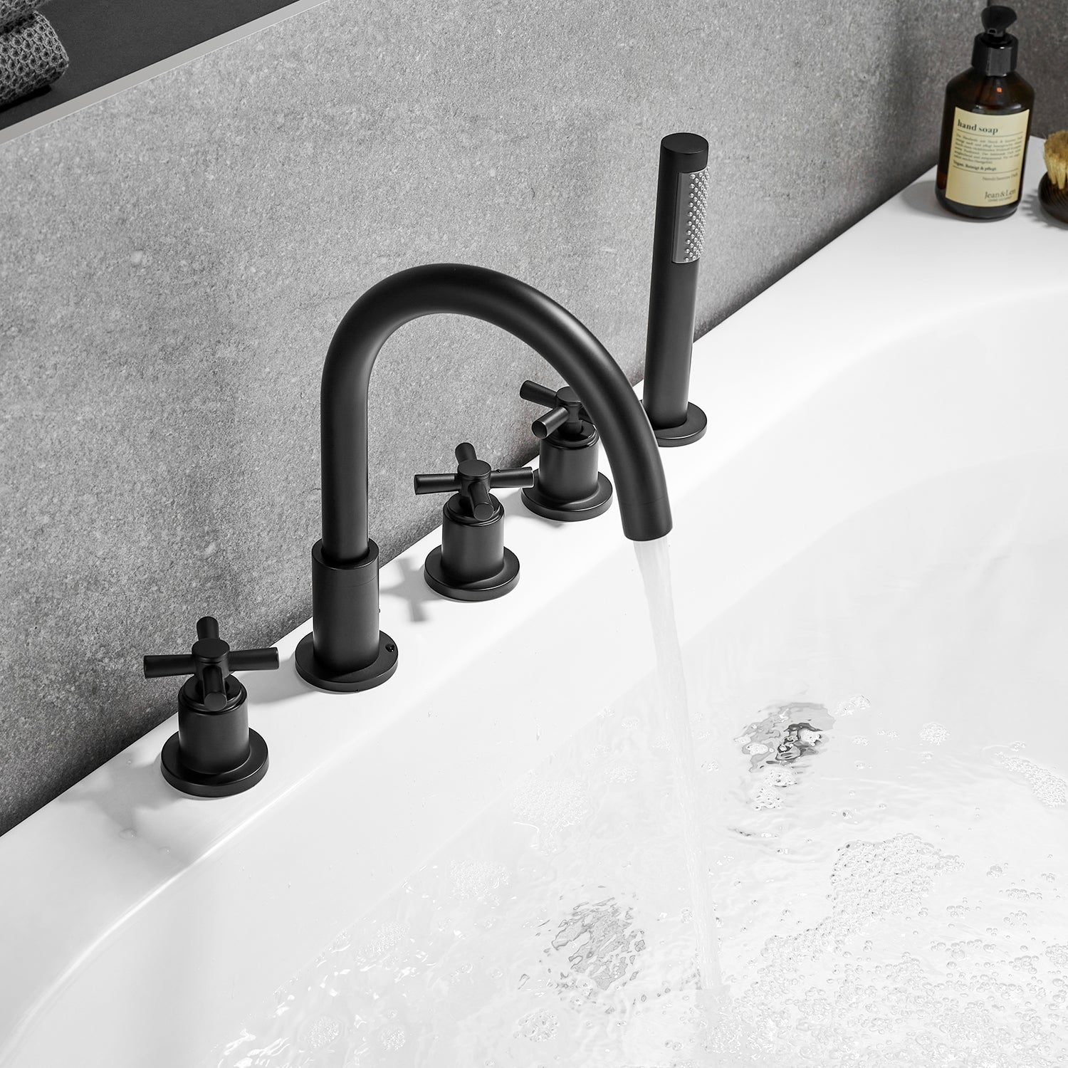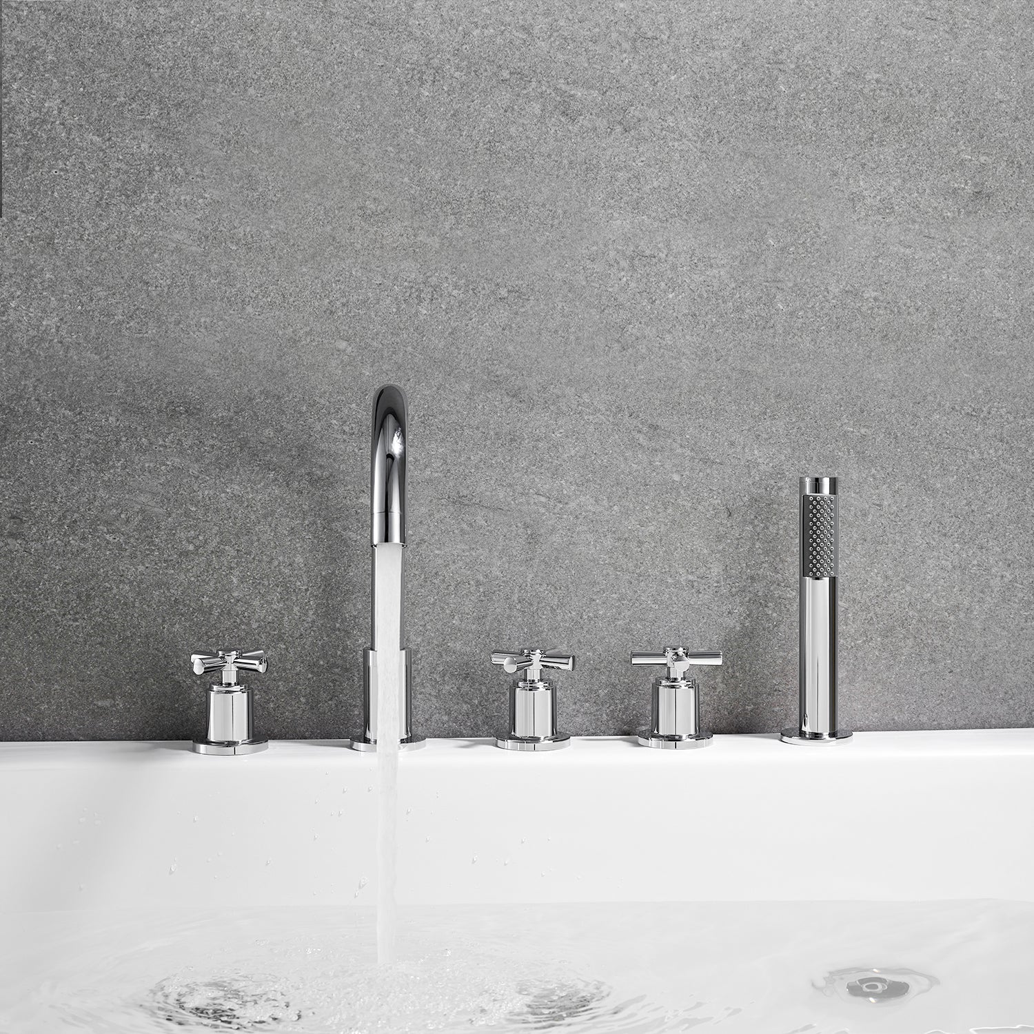 With its refined gooseneck design, our Sorlia Deck-Mount Bathtub Faucet is a stunning and versatile addition to any style tub. It features ergonomic triple-cross handles as well as a handheld shower head that provides the ultimate in bathing convenience. This faucet is constructed of solid brass components and plated in your choice of two elegant finishes. It’s engineered for years of reliable performance and enduring beauty.
