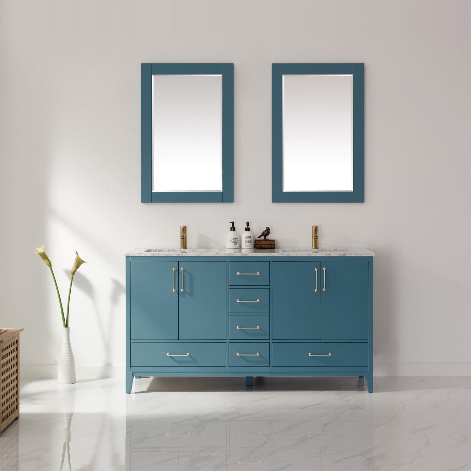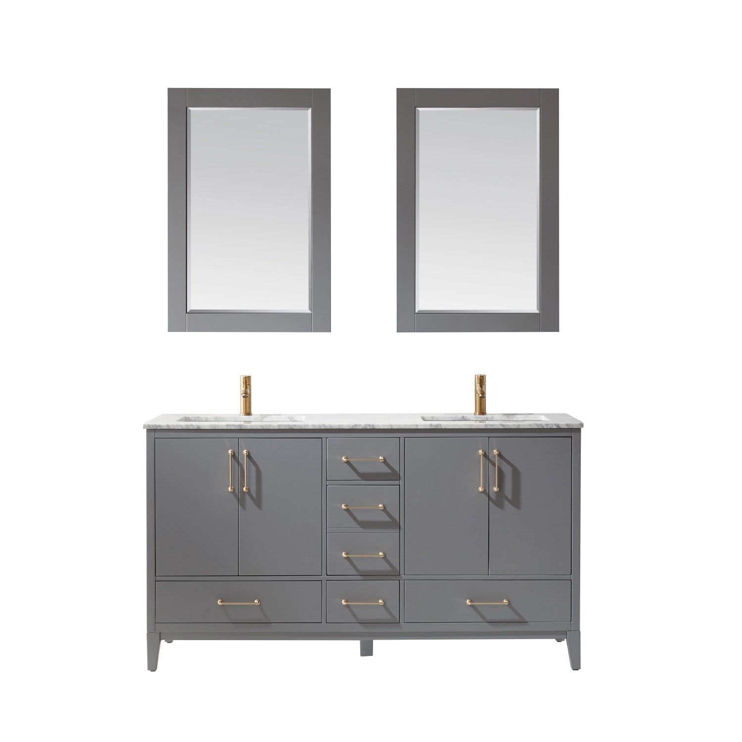 Clean, refined and elegant: that’s the essence of the Sutton Vanity. This beautiful, sturdy furnishing offers an eye-catching medley of finishes, from the gorgeous marble countertop and smooth cabinets to the golden-toned hardware. You’ll love all the storage inside—perfect for housing your favorite towels and other bathroom essentials.