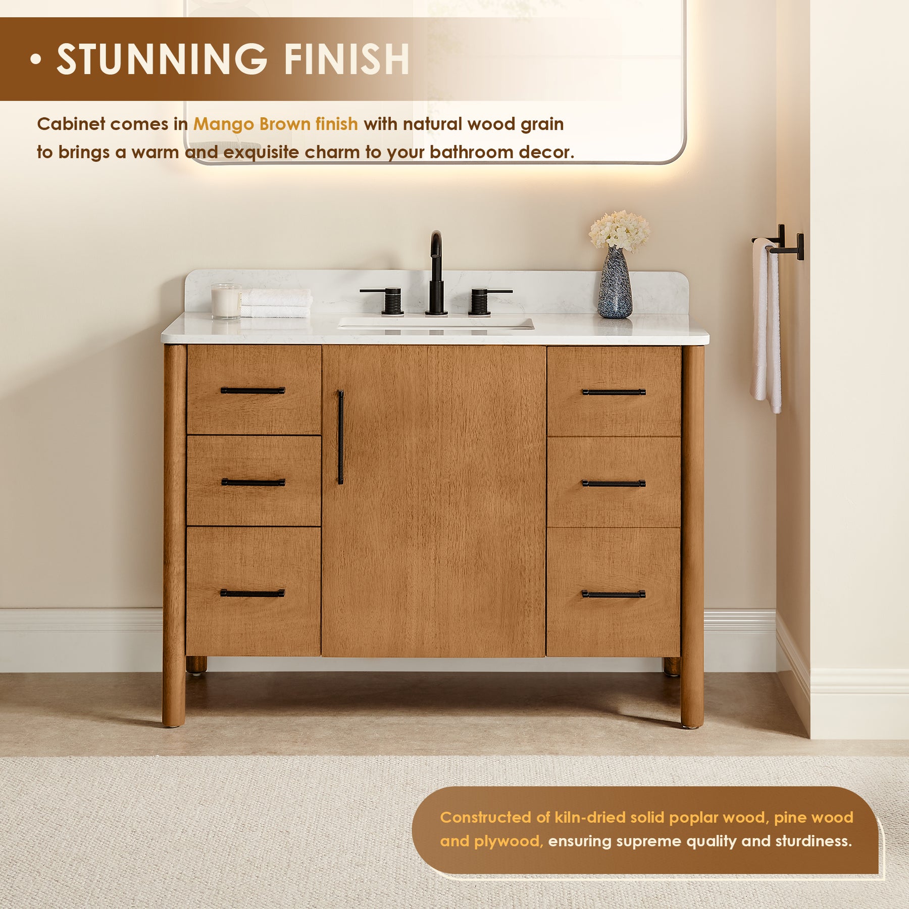 Color: Stunning finish: Cabinet comes in an alluring Mango Brown finish that reveals the natural wood grain beneath, bringing a warm and exquisite charm to your bathroom decor.