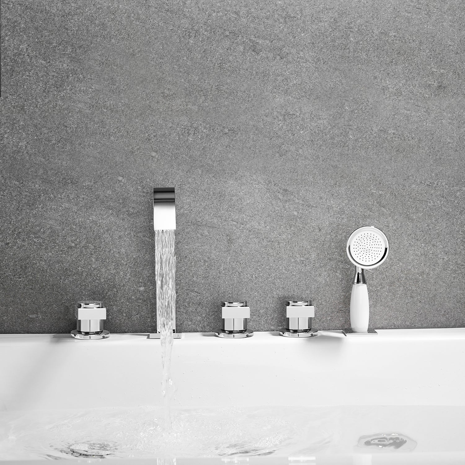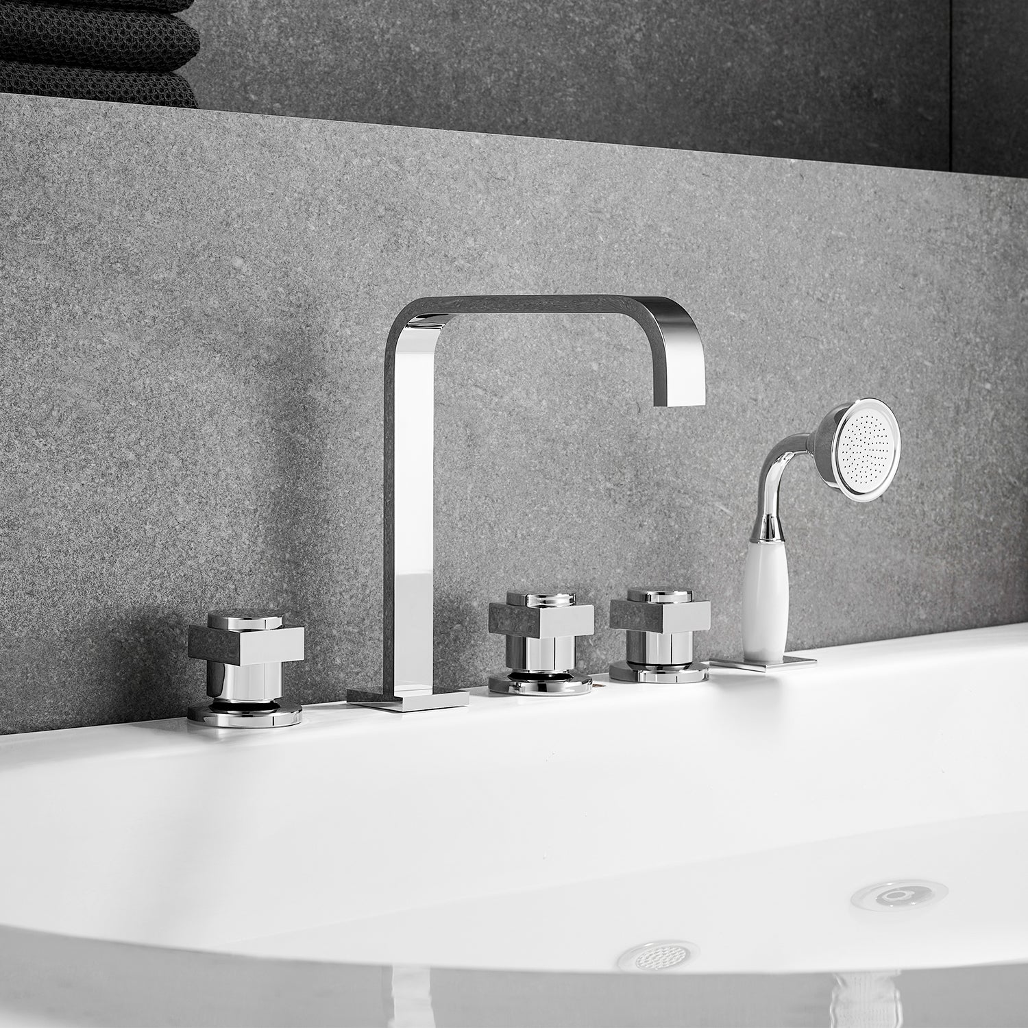 Combining extraordinary modern architecture with precision engineering, our Vikran Deck-Mount Bathtub Faucet is the perfect way to update your tub. It features a distinctive look that’s matched only by its exceptional performance. Cast of durable solid brass, this faucet offers a thoughtful, eye-catching design that beautifully complements the contemporary bath.