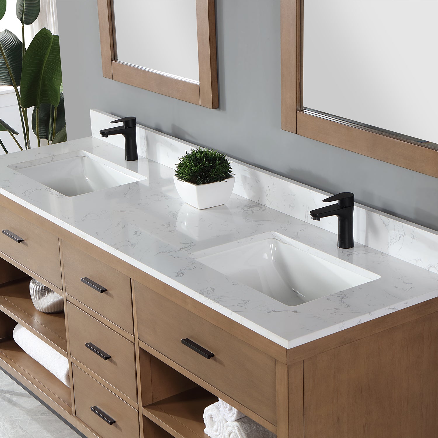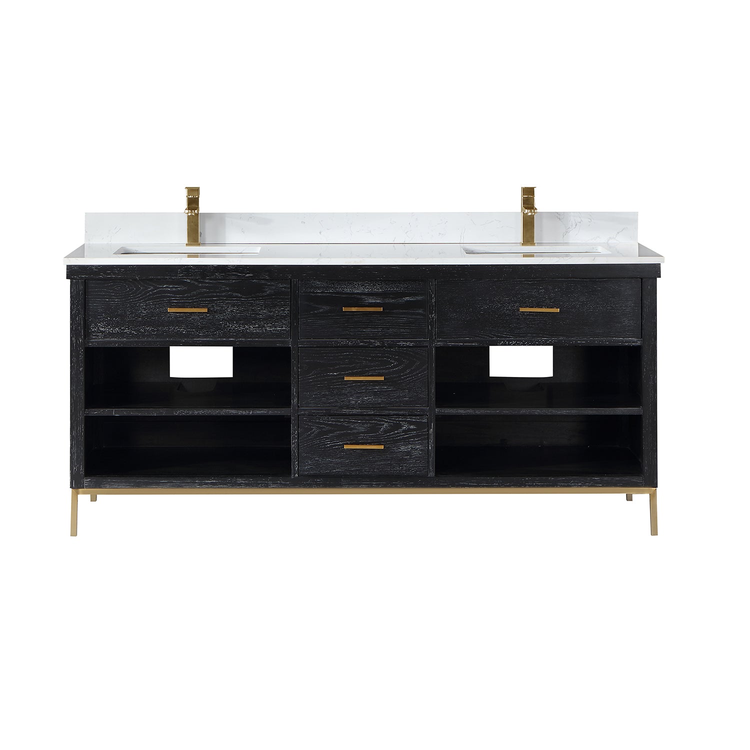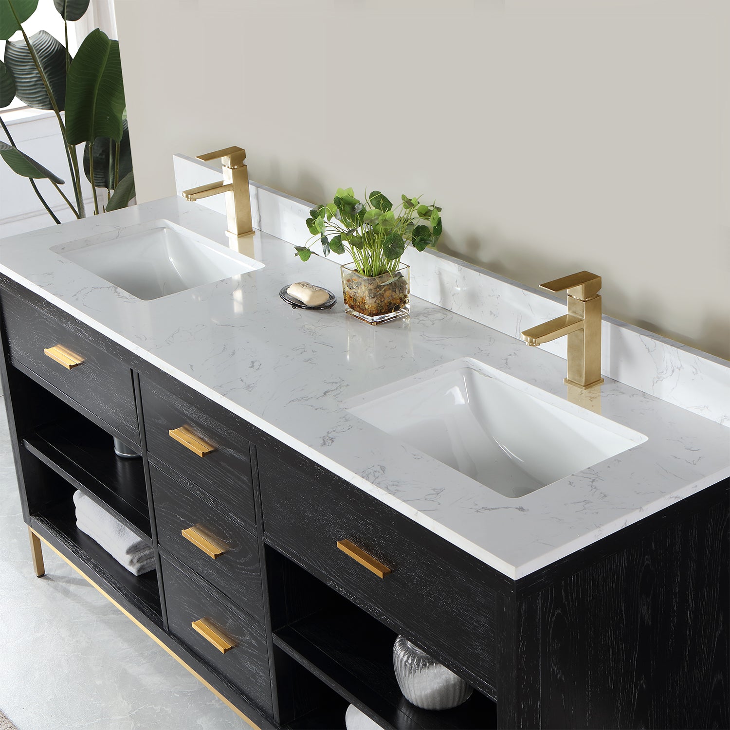 Looking to add style and warmth to your bathroom space? Featuring an exciting blend of textures and storage options, our Wildy Vanity Series embodies a fresh, modern aesthetic with an industrial edge. This piece doesn’t skimp on space, with a roomy main cabinet and full-extension, soft-closing drawers atop an open metal frame. A bottom open shelf adds optional storage or display space for luxury towels. The cabinet is adorned with a solid Engineered Stone Countertop featuring exquisite marbling and an easy-to-clean surface.