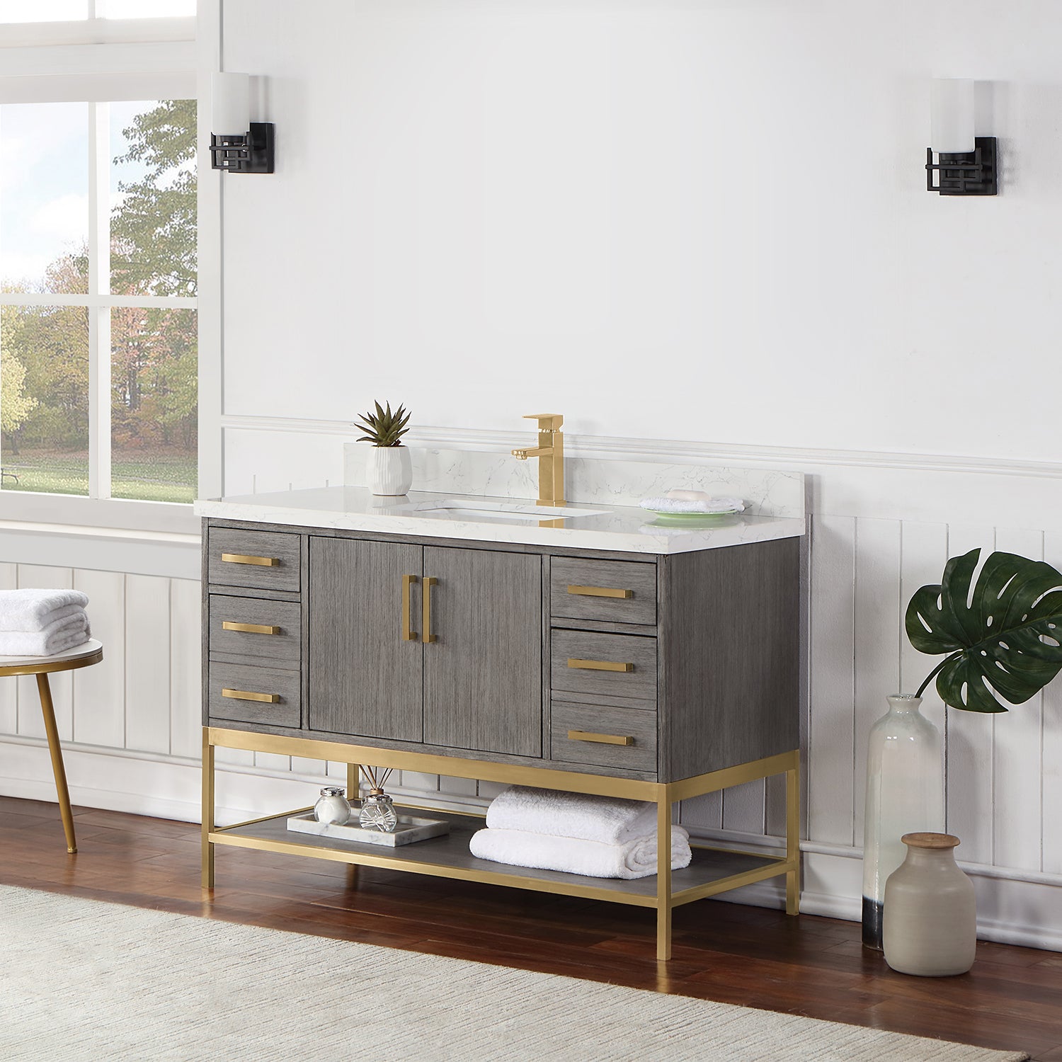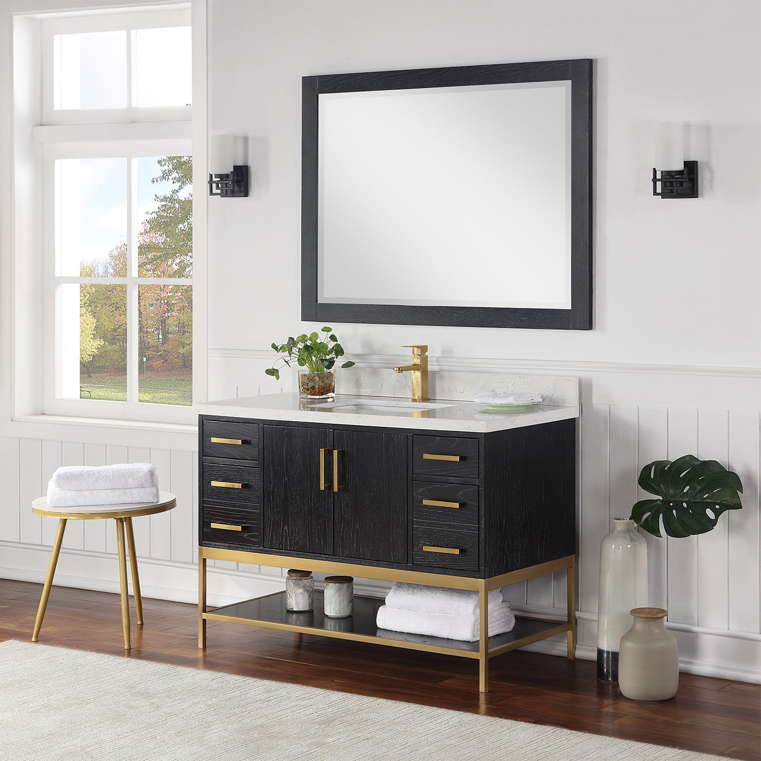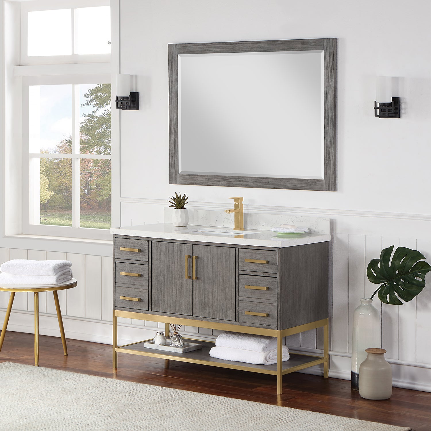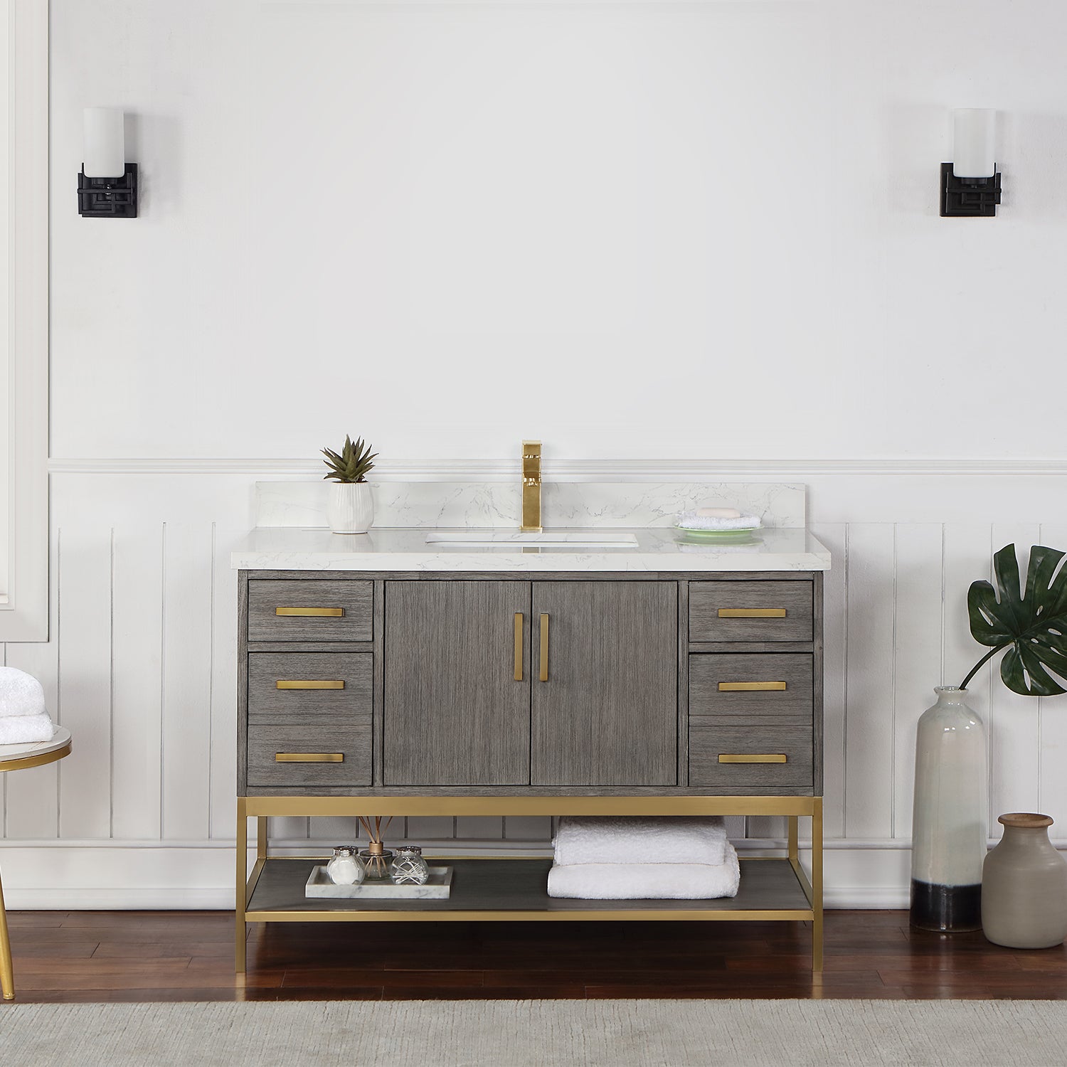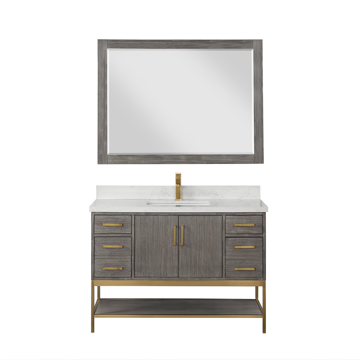 Looking to add style and warmth to your bathroom space? Featuring an exciting blend of textures and storage options, our Wildy Vanity Series embodies a fresh, modern aesthetic with an industrial edge. This piece doesn’t skimp on space, with a roomy main cabinet and full-extension, soft-closing drawers atop an open metal frame. A bottom open shelf adds optional storage or display space for luxury towels. The cabinet is adorned with a solid Engineered Stone Countertop featuring exquisite marbling and an easy-to-clean surface.