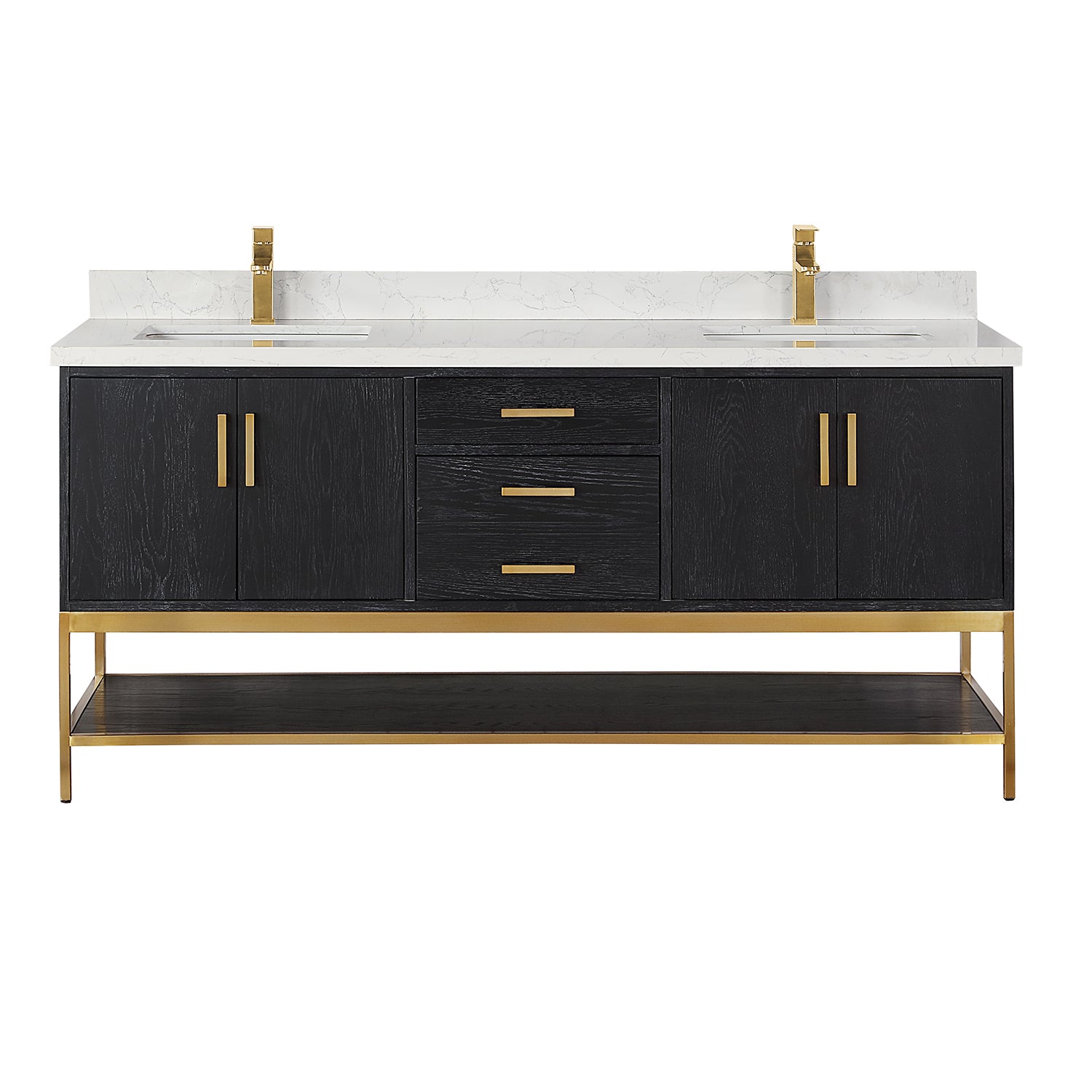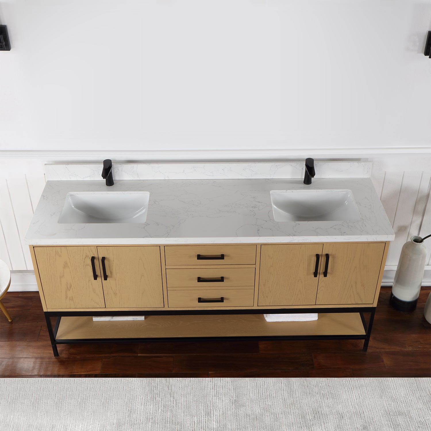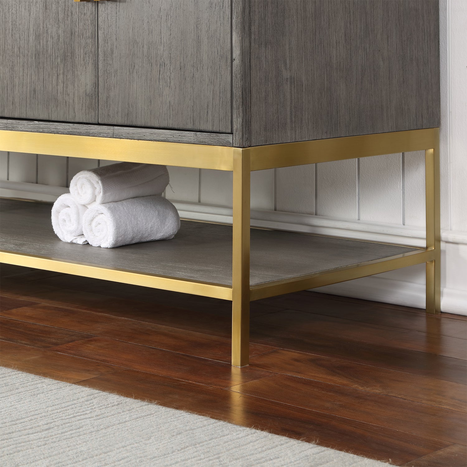 Looking to add style and warmth to your bathroom space? Featuring an exciting blend of textures and storage options, our Wildy Vanity Series embodies a fresh, modern aesthetic with an industrial edge. This piece doesn’t skimp on space, with a roomy main cabinet and full-extension, soft-closing drawers atop an open metal frame. A bottom open shelf adds optional storage or display space for luxury towels. The cabinet is adorned with a solid Engineered Stone Countertop featuring exquisite marbling and an easy-to-clean surface.