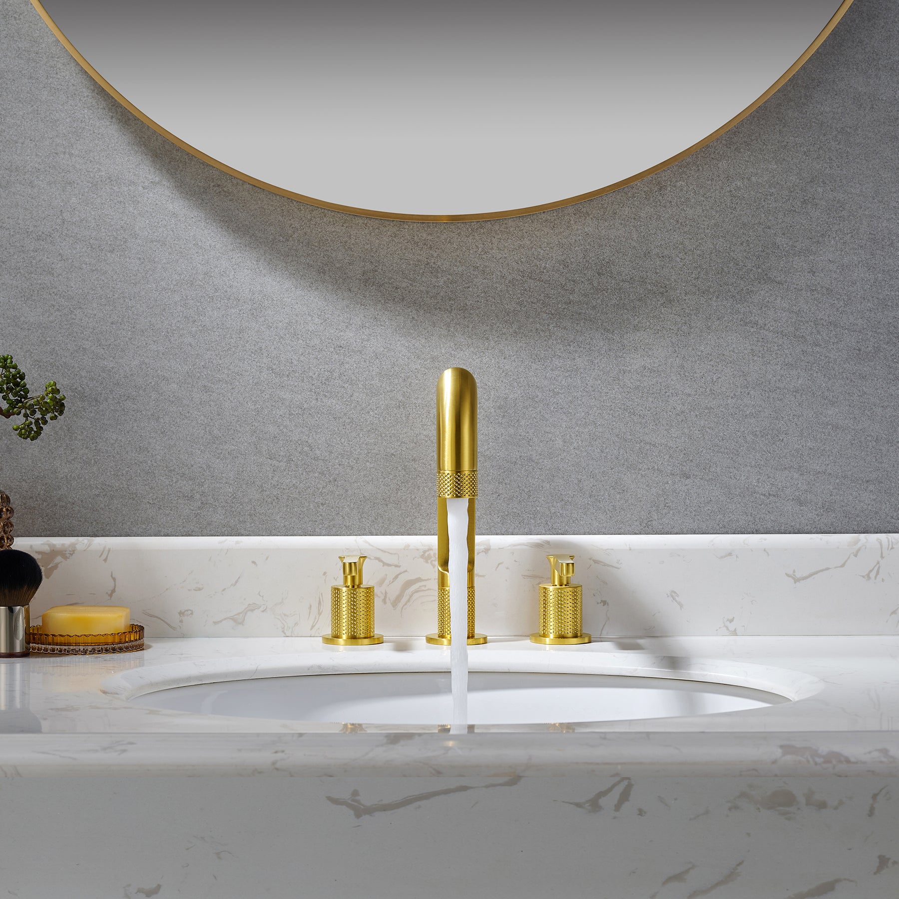 Skillfully crafted from premium solid brass, the eye-catching Wishful Faucet strikes the ideal balance between upscale style, exceptional durability, and dependable performance. Dual handles—featuring a uniquely textured finish—provide excellent control and flexibility, allowing for effortless and precise adjustments to both water flow and temperature. You’ll also love the vertical spout design, which minimizes splashing, boosts water flow efficiency, and lends a contemporary edge to your bathroom decor. Whether you're upgrading your home or designing your dream bathroom from scratch, Wishful is the perfect statement piece.